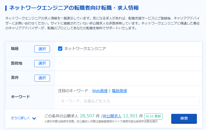 一つの基準として、公式サイトで「年収600万円以上」のネットワークエンジニア向け求人がどのくらいあるかを確認してみましょう。