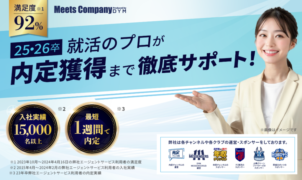 ミーツカンパニーは、株式会社DYMが運営する新卒向けの就活エージェントです。