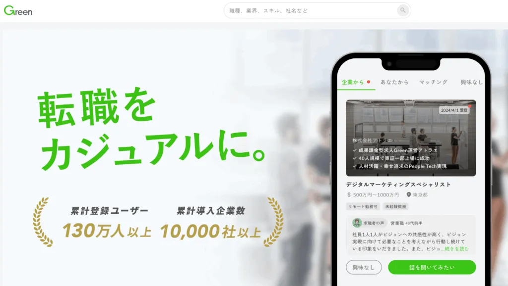 - 企業やヘッドハンターからスカウトが届くスカウト型の転職サイト